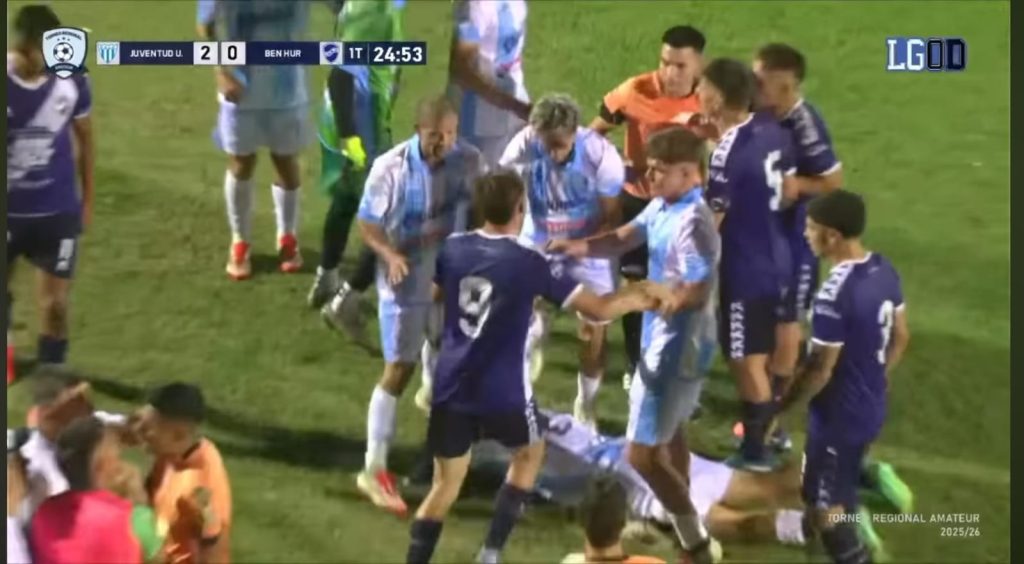 Dice un viejo dicho popular qué, el fútbol es un deporte de M…, como fuere, lo cierto es que @clubbenhur paso de ser una máquina de ganar como nunca antes en esta categoría (12 victorias en 12 presentaciones) a ser goleado por momentos y su máxima figura, Juan Bono, máximo anotador del torneo, expulsado por una trompada que desluce su trabajo y compromete a su equipo en la revancha..