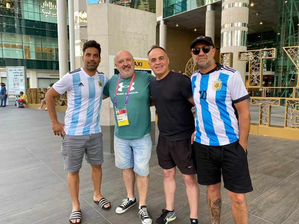 Justamente transitando el centro de esta espectacular ciudad de Doha, nos cruzamos con Martín Basso y un grupo de amigos, que decidieron sumarse al coro albiceleste y empujar también a la Scaloneta.